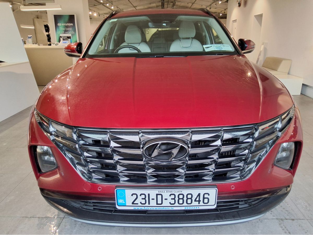 Top Spec Hyundai Tucson Executive Plus Hybrid Finished Fiery Red With Ivory Leather. 1 Owner Car With Only 34,000 Km And Warranty & AA Membership Until 2028. Call Our Sales Team Now On 01 8332241 To Book Your Test Drive. Finance Available. Air Conditioning, Central Locking, Electric Windows, Airbag, Alarm, Alloy Wheels, Cruise Control, Electric Mirrors, Fog Lamps, Immobiliser, Leather Upholstery, Rear Spoiler, Full Leather, Privacy Glass, Automatic Wipers, Automatic Lights, Centre Armrest, Luggage Cover, Multi-function steering wheel, Roof Rails, Satellite Navigation, Traction Control, Metallic Paint, Multiple Air Bags, Anti-Theft System, Parking Sensors, Bluetooth, Remote Central Locking, EBD, Electronic handbrake, Folding rear seats, Isofix, Hill holder, Roadside assistance, Apple Car Play, Android Auto, Mirror Link, Keyless Entry, Heated Front Seats, Reversing Camera, Motorised Tailgate, Front Parking Sensors, Lane Departure Warning, Electro Chrome Rear View Mirror, Speed Sign Recognition & Recommendation, Active Safety Braking / City Brake / Collision Alert, Heated Steering Wheel, Stop/Start Button, Touch Screen Media Control, Driver Fatigue Warning, Drive Mode Selector, Dual Zone Climate Control, Daytime Running Lights, Manufacturer Warranty, 2 Keys, External Devices Connectivity, Cup holders, Remote boot/hatch/rear door release, Stability control