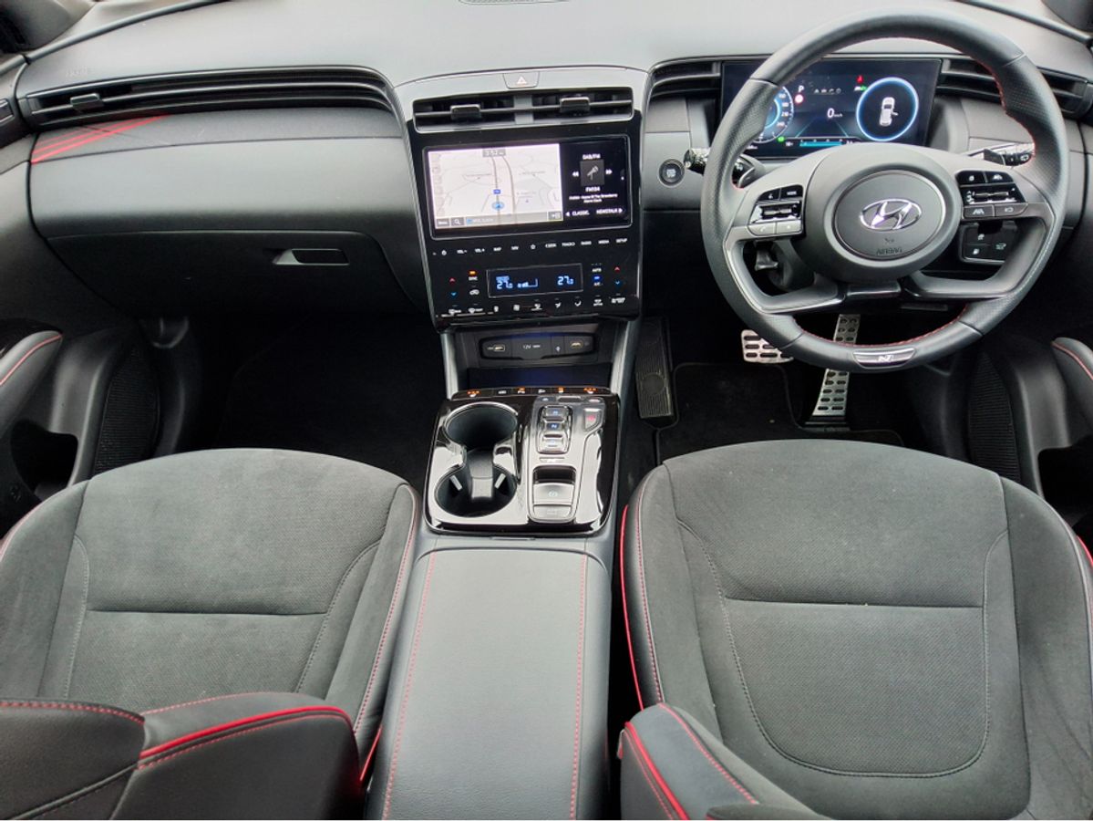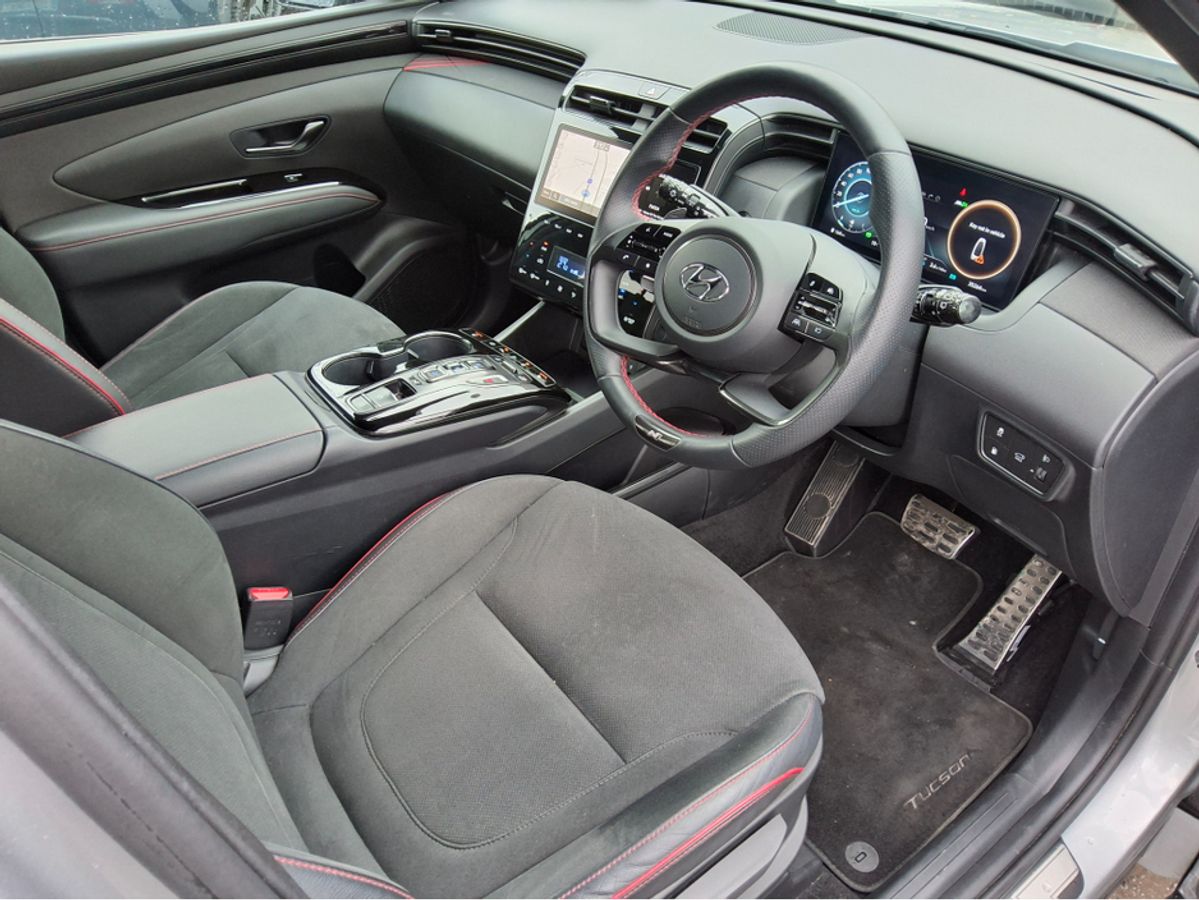 Much Sought After Hyundai Tucson N Line Plug In Hybrid Now In Stock. This 1 Owner Car Is Finished In 2 Tone Platinum Silver With Black Roof And Comes With Massive Spec And Ultra Low Running Costs From It's Plug In Hybrid Set Up. Hyundai Warranty With Free AA Membership Until 2029. Call Our Sales Team Now On018332241 To Book Your Test Drive. Finance Available. Central Locking, Electric Windows, Airbag, Alarm, Alloy Wheels, Cruise Control, Electric Mirrors, Fog Lamps, Immobiliser, Rear Spoiler, Privacy Glass, Automatic Wipers, Automatic Lights, Centre Armrest, Multi-function steering wheel, Roof Rails, Climate Control, Satellite Navigation, Traction Control, Metallic Paint, Anti-Theft System, Parking Sensors, Bluetooth, Remote Central Locking, EBD, Electronic handbrake, Folding rear seats, Sun blinds, Isofix, Hill holder, Roadside assistance, Apple Car Play, Android Auto, Mirror Link, Keyless Entry, Heated Front Seats, Reversing Camera, Motorised Tailgate, Front Parking Sensors, Lane Departure Warning, Wireless Smartphone Control, Active Safety Braking / City Brake / Collision Alert, Heated Steering Wheel, Stop/Start Button, Touch Screen Media Control, Driver Fatigue Warning, Drive Mode Selector, Dual Zone Climate Control, Daytime Running Lights, Manufacturer Warranty, 2 Keys, External Devices Connectivity, Cup holders, Remote boot/hatch/rear door release, Stability control