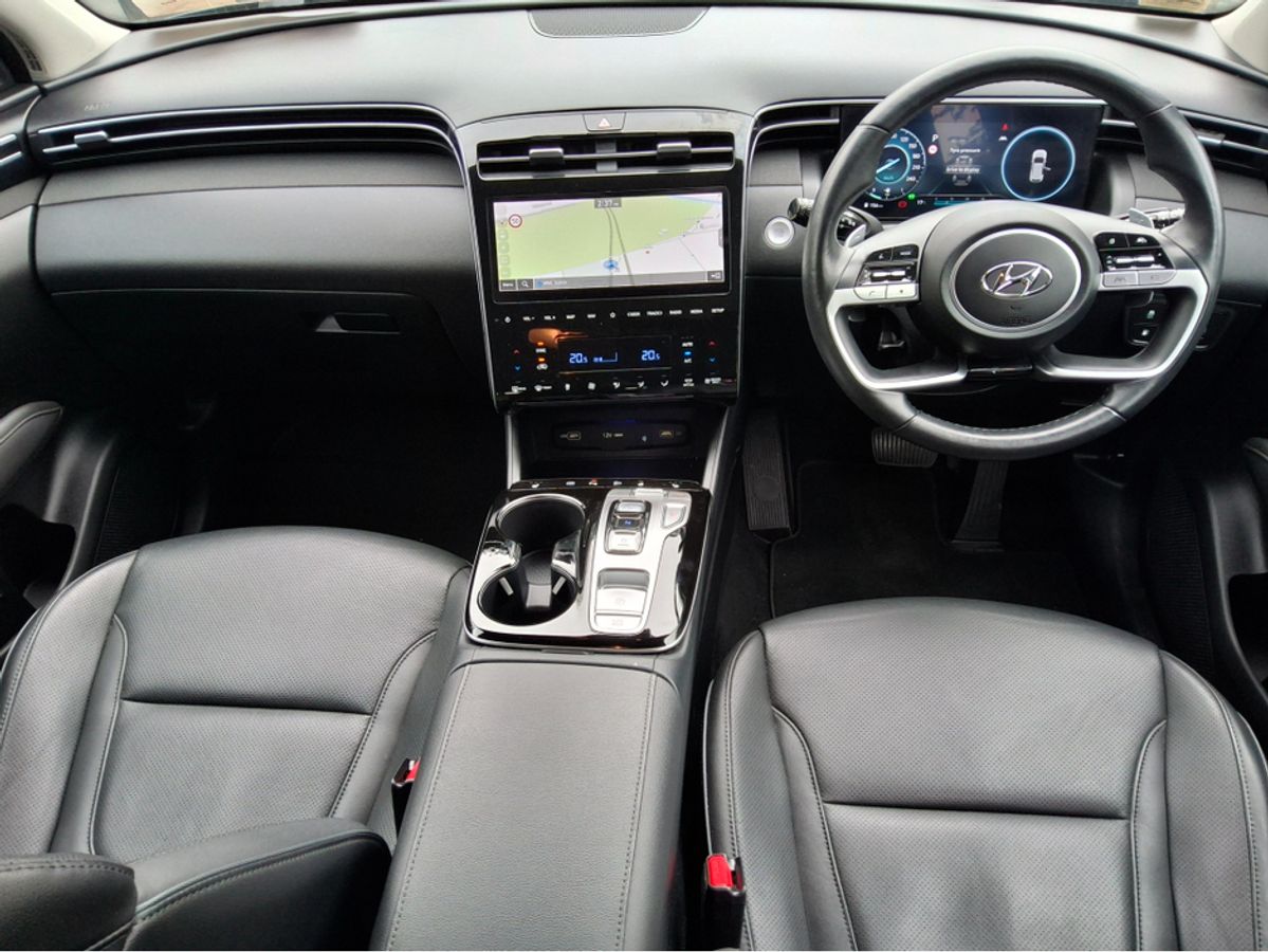 Very Low Mileage, Top Spec Tucson Executive Plus Plug In Hybrid Finished In 2 Tone Teal With Black Roof, Black Leather Interior And Hyundai Side Steps.