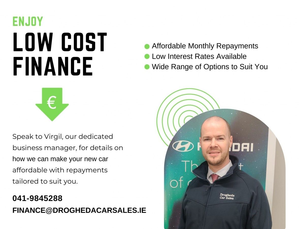 Main Hyundai & Suzuki Dealership. Drogheda Car Sales, North Road, Drogheda, Co. Louth. All Cars are serviced and fully Valeted to the highest standards before collection. All Trade Ins are accepted and we have fantastic low finance options to suit your every need. Contact a member of our professional Sales Team on 041-9845288. Our opening times are Mon-Fri 9am-6pm and Sat 9am-3.00pm.